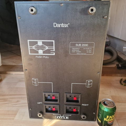 Sattelit og subwoofer sæt i god pæn stand, opgivet 4-8 ohm 90 watt. Sættet spiller pænt og kantophæng på begge 8" basenheder er skiftet. Subwooferen måler 21x32x50cm HxBxD og sattelitterne 21x11x11cm HxBxD med vægophæng 20cm dyb. Der medfølger ca 4x4 meter ledning. Sættet er fra omkring 1989.