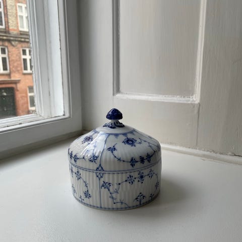 Denne lågkrukke har mange anvendelsesmuligheder – både som dekorativt element og som funktionel skål til småting, sukker, smykker eller krydderier. Den passer perfekt ind i klassiske såvel som moderne hjem og er samtidig et eftertragtet samleobjekt.