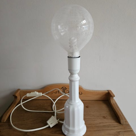 Stor hvid Heiberg opaline bordlampe H 58 cm inkl. fatning i rigtig god stand