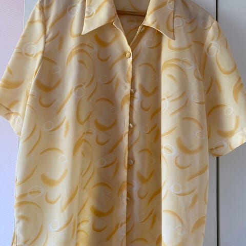 Flot lysegul ren/hel skjorte med flot mønster ved knapper i 100% polyester, som nu kan blive din