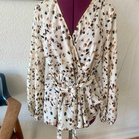 Trendyol grøn skjortebluse str. 40 (svarer til en str. 36-38). 100 % viskose. Brystomkreds 90 cm. Slanke, korte ærmer. (Brugt 2 gange).