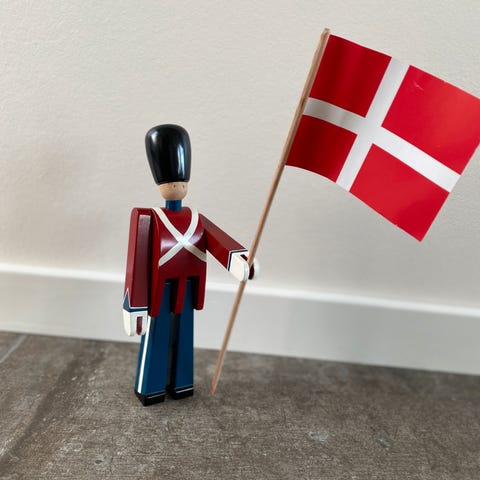 Soldat træfigur med tromme i rød og blå farve. Kay Bojesen stempel ses på sidste foto. H: 22,5 cm. Kan sendes.
