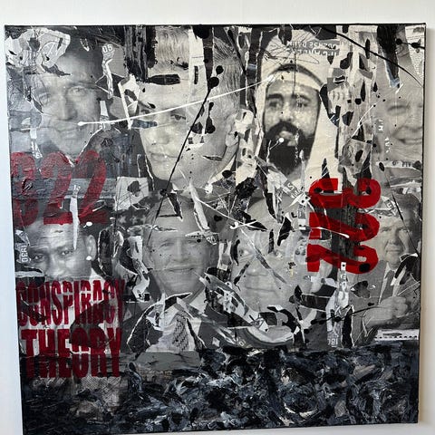 Abstrakt maleri af Nils Wengler i sølvramme 98x105. Købt i 2001.
