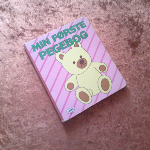 Pegebog, der for hvert opslag viser otte små billeder inden for emnerne: legetøj, på landet, på rejse, i hjemmet og bær og frugter.
