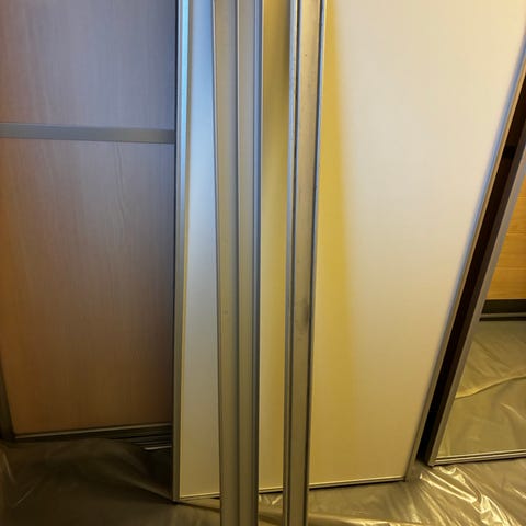 2 skydelåger med spejlglas sælges. Skinner kan medfølge.