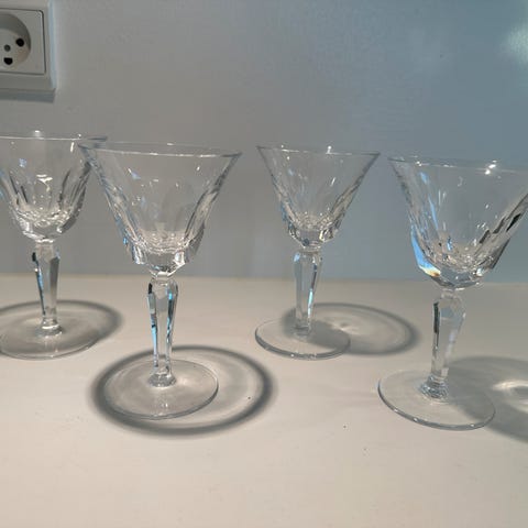 4 stk. portvinglas / snapseglas / likørglas / dessertglas / glas med stjerne fod, guldstriber rundt om glasset.