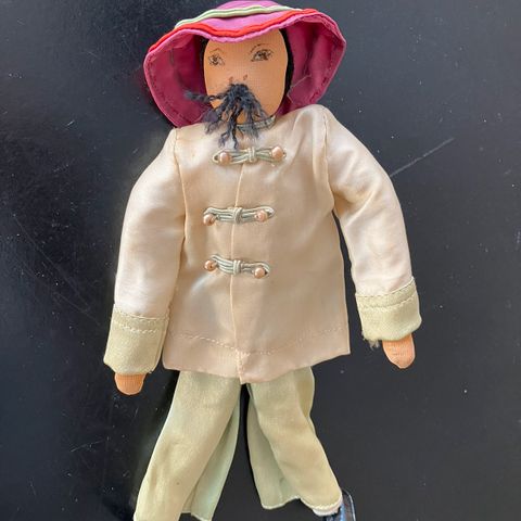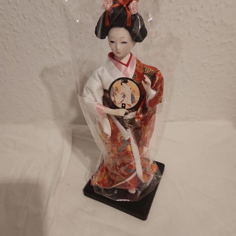 2 stk. stof figurer / dukker i silke hente hjem fra Japan/ Kyoto. De har ris i bunden så de kan stå fint.