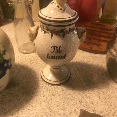 Lille Krukke med låg der sidder en lille frø på loget Højde ca 9,2 Diameter ca 6 cm. Krukke er i flot stand.