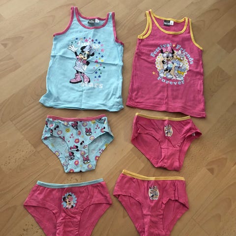 Helt nyt undertøj sælges . Det er aldrig brugt - aldrig vasket . Det er med Andersine og minnie mouse . Det er i str 98-104 Min datter er vokset fra det . Det sælges samlet for 70kr