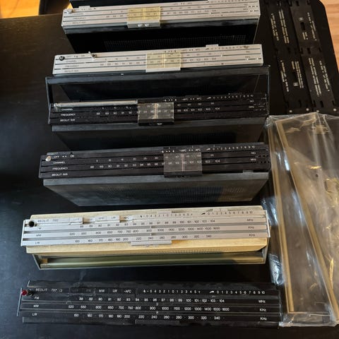 Med kabinet gitter knapper og scalaramme af henholdvis hvid og mørkebrunt bakelit.