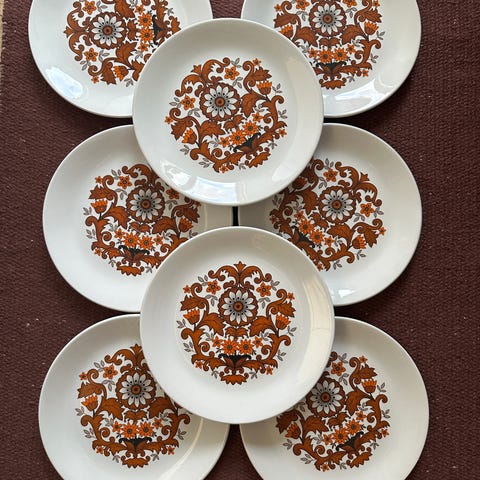 Brunt motiv på flødefarvet bund.