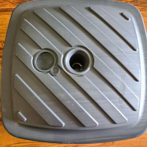 Parasolfod, EDA, plast, Hvid parasolfod til vand eller sand. 40 x 40 cm. Ca. 2,5-3 cm. Fra ikke ryger hjem. Afhentet eller plus 85 kr. til forpakning og forsendelse med tracking.