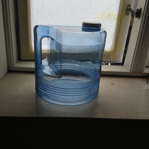 Sælger en 19 L vanddunke med låg. Aldrig brugt. Produktdimension: D 280 x B 170 x H 460 mm