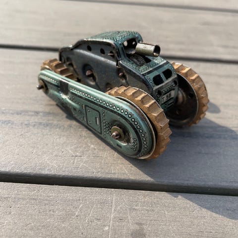 Sjælden gammel bliktank Arnold fra 40’erne med nøgle og bælter A588
