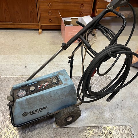 Højtryksrensen af ældre dato men funger, dog skal der siges at håntagets knappen skal holdes ind når du starter elles slår den relæet fra