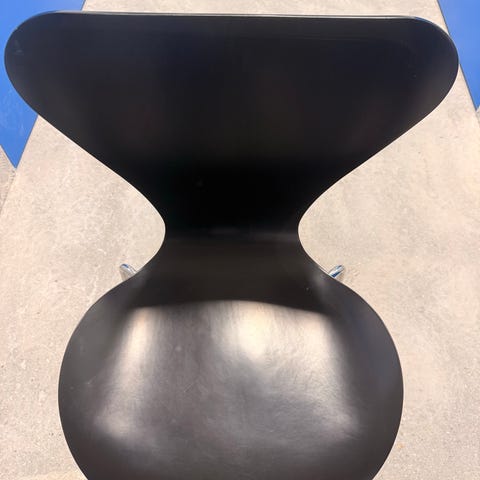 Arne Jacobsens dansk design ikon 7er stolen i rød lakering. Den ikoniske spisebordsstol har fast ryg med få brugsspor på lak, se billederne.
