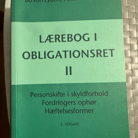 Lærebog i obligationsret II, Bo von Eyben m.fl., år 2016, 4 udgave, Hæftet bog fra Karnov, intet navn men en del overstregninger og noter.