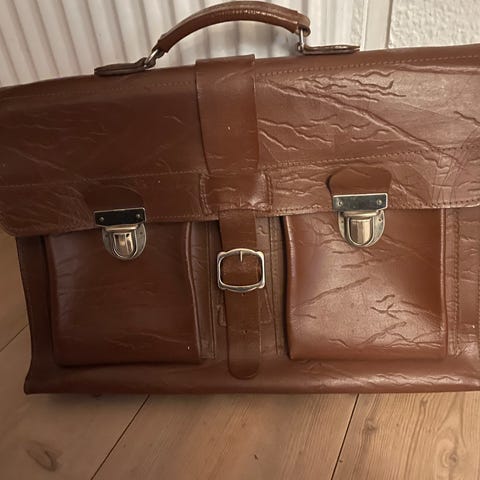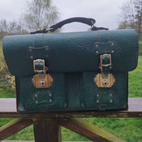 Retro skoletaske med lidt brugs spor lidt rust ved nitterne til håndtaget