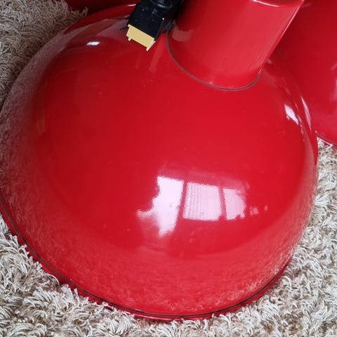 Bunker bordlampe af grøn lakeret aluminium og plast. Designet af Jo Hammerborg for Fog & Mørup. Skærm diam. 14 cm. Med lille hak / tryk i toppen, se sidste foto.