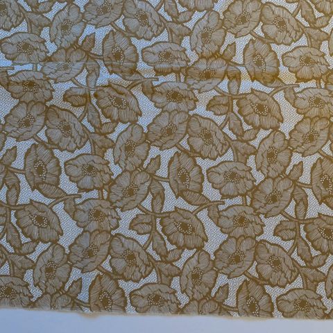 2 blomstret pudebetræk af bomuld. Med trykknapper. Hvide blomster på brun bund. Vintage stof fra 1970erne. Til et syprojekt er der 2 stykker stof på 152 x 76 cm, hvis man sprætter syningerne op.