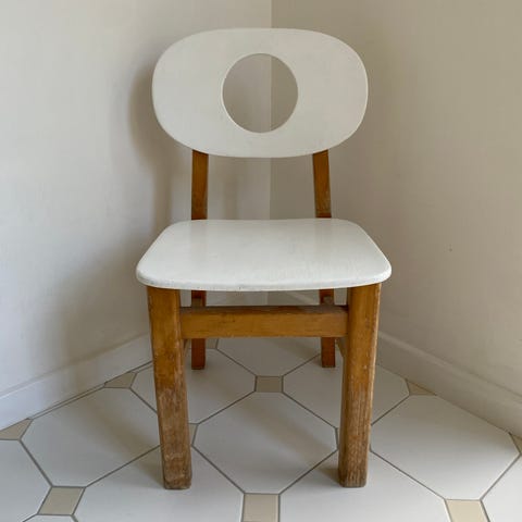 Børnestol sælges. Den sorte maling er slid lidt af flere steder. Se billeder. Skal hentes i Frederikssund