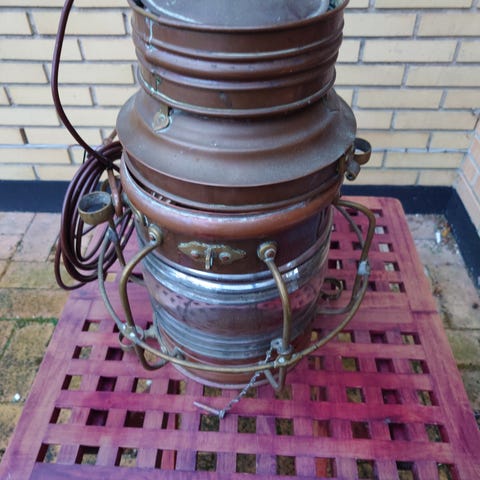 Meget velholdt kobberlanterne til petroleum. Meget velholdt. Højde 22 cm. Sendes gerne mod betaling af fragten