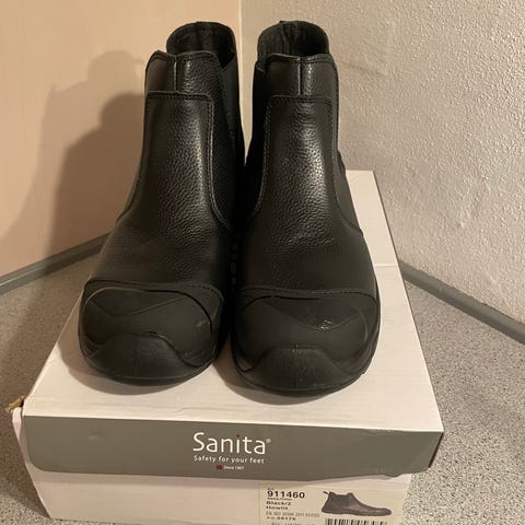 Rigtig fede og behagelige sikkerhedssko fra Sanita. har været brugt sammenlagt 2-3 Timer, så Standen er som ny.