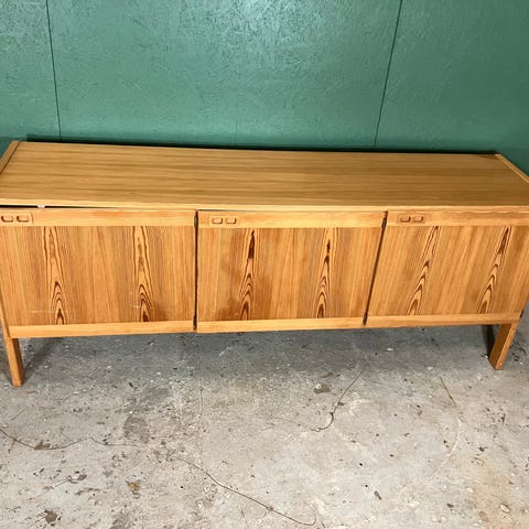 Superflot fyrretræ skænk med masser af opbevaringsplads, velholdt med velfungerende skuffer, skabslåger og greb. Så flot