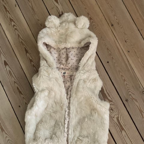 sød og hyggelig vest i fleece-kvalitet med hætte og lommer fra „MeRu“ i meget fin stand. Kan sendes.