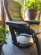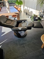 Lækker stol med flere positioner, er blevet justeret, så den holder positionen, har to, men desværre ikke pladsen.