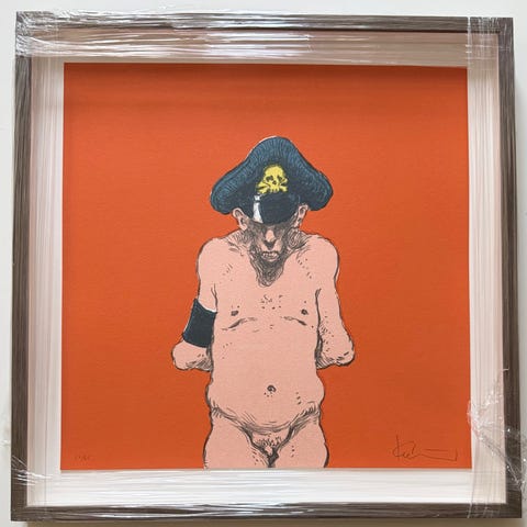 Stort michael kvium offset fra 80erne ved udstilling papirvirus Horsens utroligt sjældent og findes nok ikke nogen tilbage som er signeret af michaiel kvium det bærer desværre præg af de mange år med små pletter og folder generelt ok stand se selv. Sendes ikke afhentes kun størrelse inkl ramme 91x61 meget sjældent mulighed for at få et stort tryk som er signeret af kvium en af Danmark Aller største nulevende kunstnere.