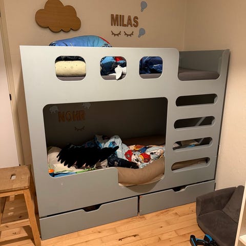 OBS. Med skummadrasser til begge køjer. Sengen skal skilles ad af køber for at den nemmest samles igen :)