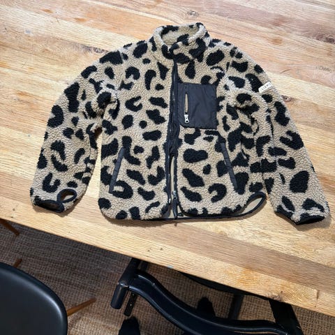 Liewood Fleecetrøje i størrelse 122, designet til børn og egnet til både drenge og piger. Jakken er brun med et leopardmønster og lavet af blødt fleece materiale, der giver varme og komfort.