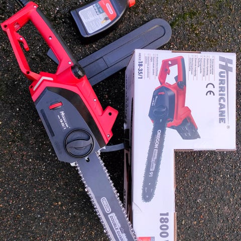 Bosch UniversalChain 35 elektrisk kædesav med en effekt på 1800 watt og en sværdlængde på 35 cm. Kædesaven er designet til effektiv og nem træskæring.