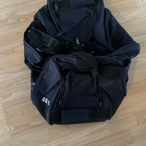 Supergod og smart sort H2O sportstaske med håndtag og skulderstrop, 1 stort rum med 2 lynslås adgange, lynlåslommer i begge sider inkl. til drikkedunk i den ene side, lynlåslomme foran. Alt virker som det skal.