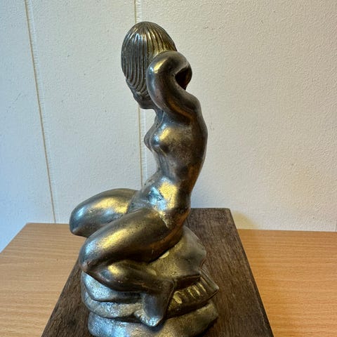 Hans Kongslev (1893-1966) for Tinos, "Fyrtøjet", 1940'erne. Bronze look, med gipsfyldning. Stemplet "TINOS/KONGSLEV". H: 23 cm. D: 11 cm. Vægt: 1827 g. Figuren er i metal. Fremstår med brugsspor i pæn stand.