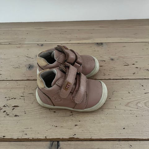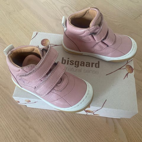Bisgaard børnesko i størrelse 22 til piger. Skoene er lavet af rosa læder og har en lukning med velcro. Sålene har mønstrede gummipuder for bedre greb. Skoene er designet til små børn og egner sig til daglig brug.