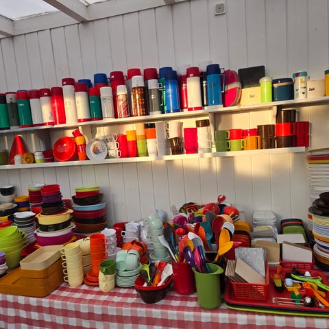 Lidt af hvert til en picnic eller camping tur i retrofarvernes tegn - i mepal fra gode gamle Rösti.