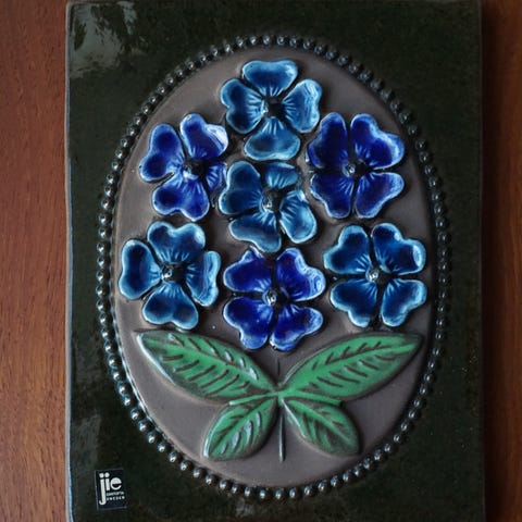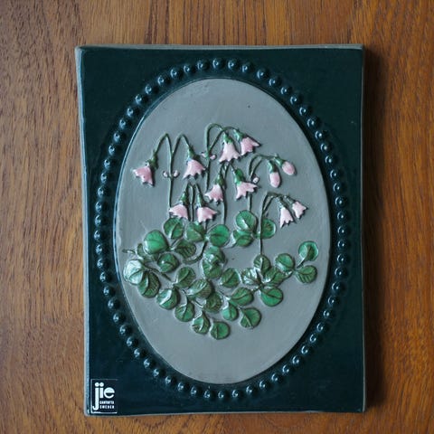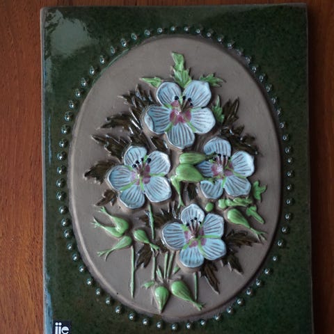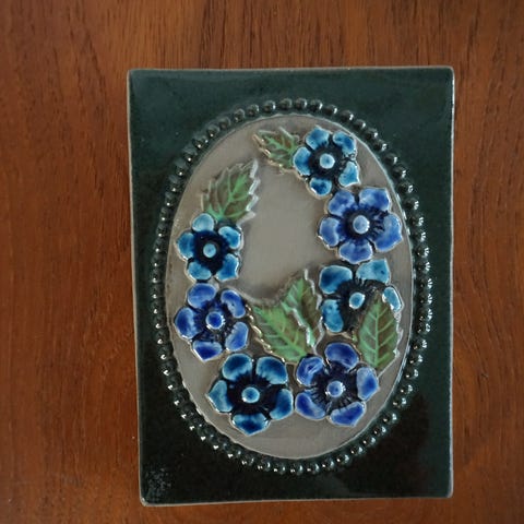 Smuk keramisk plade / relief fra Christina Keramik Sweden med blomster og blade. Perfekt som vægdekoration.