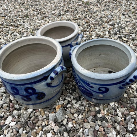 Særdeles flot og dekorativ vintage ler-/stentøjs krukke med 4 runde rum