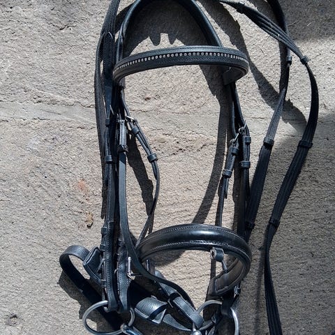 Riders Company populær sidepull / bidløs trense med tøjle, str. FULL, med messingspænder, toplækker læderkvalitet. Helt ny.