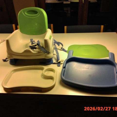 Stolen kan monteres på almindelig stol eller man kan stille den på bordet. God transportabel stol til baby/lille barn.