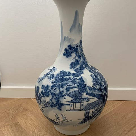 Biscuit porcelæn blev ofte brugt til dekorative genstande, da det tillader skarpe konturer og et klassisk udtryk uden den glans, som glasur normalt tilfører. Vasen fremstår i flot stand, uden afslag eller revner, og har en fin patina, som understreger dens alder og håndværksmæssige kvalitet. Den er sandsynligvis fremstillet til eksport, som mange kinesiske porcelænsgenstande i perioden, og kombinerer traditionelt asiatisk formsprog med europæisk smag.