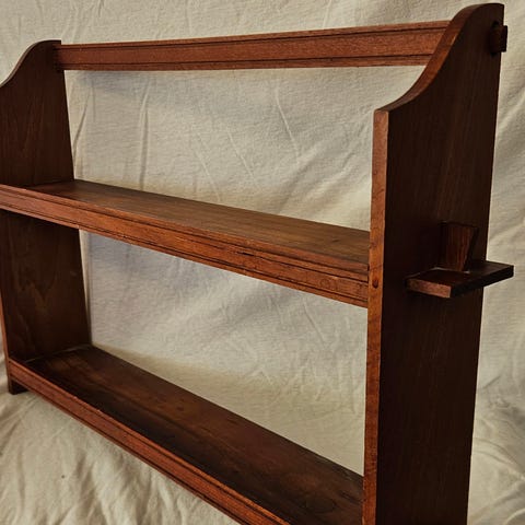 2 gamle massive teak svævehylder i massiv teaktræ.