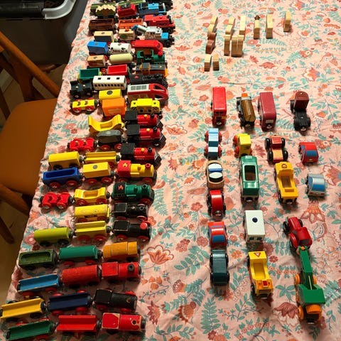 BRIO togbane med 3 broer, politistation, vaskehal, forskellige tog/vogne, chuggington tog, masser af skinner