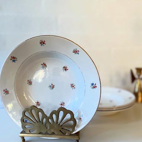 7 dybe tallerkener af fajance med blåt motiv /dekoration