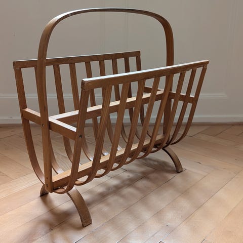 Retro aviskurv/magasinholder i fyrretræ fra 70-80’erne i fin minimalistisk design