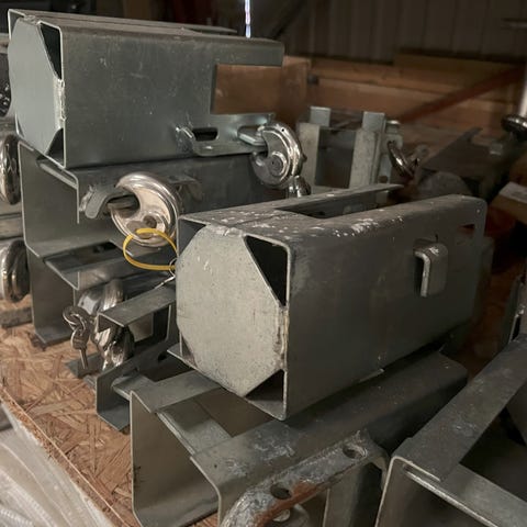 12 Beslag til montering af topstænger i fortelt 3 stk nye og 9 stk let brugte , ny pris 700kr . Varen kan sendes køber betaler ,