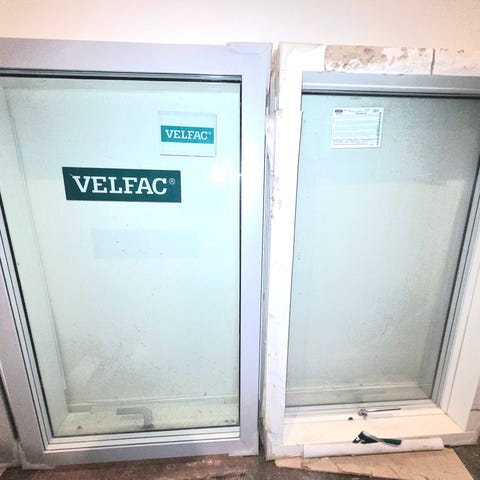 3 lags lavenergi. Hvid 9010 ude og inde. 915 x 1330 mm.