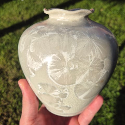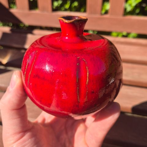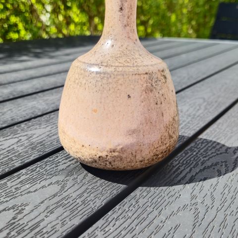 Smuk keramik vase med flot form. Jeg tror det er studio keramik da jeg føler den vejer mere end når man løfter en ny produceret vase. og jeg kan ikke finde en magen til på Google lens. Den har nogen ujævnheder i bunden men ses ikke når den står.